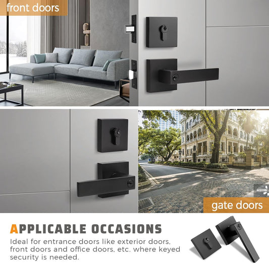 KNOBWELL Double Keyed Black Exterior Door Handles With Deadbolt