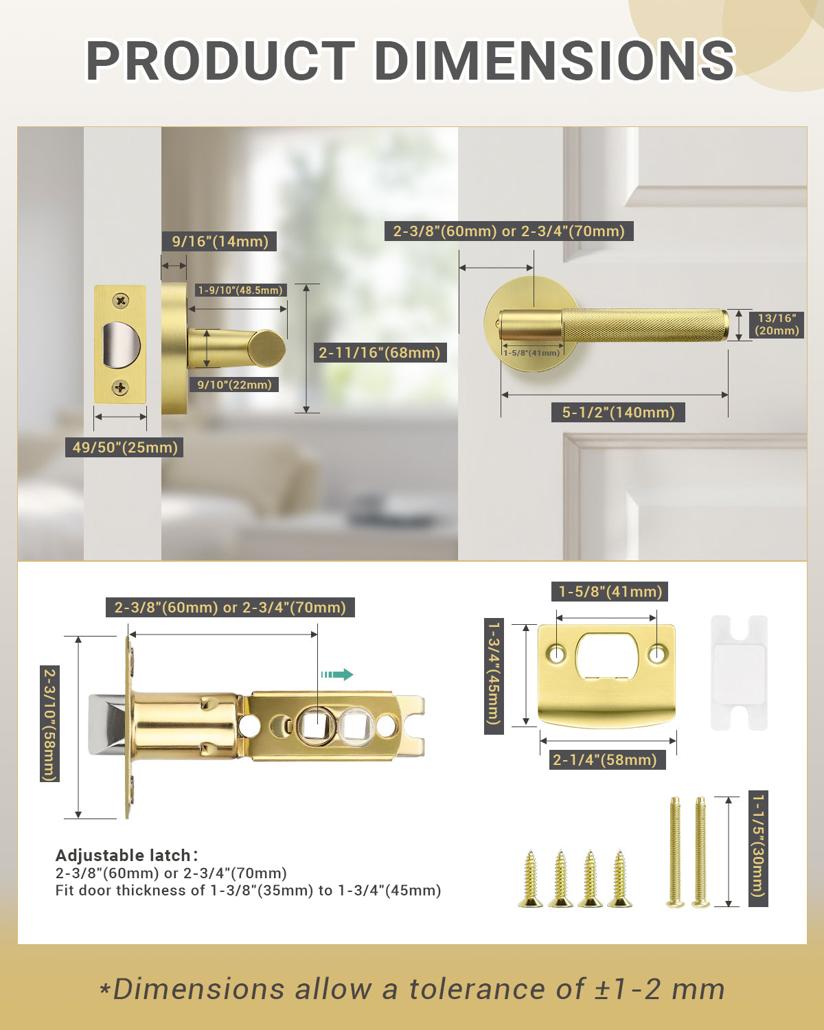 | Fits Door Thickness | 35mm(1-3/8") to 45mm(1-3/4") Notice: The latch plate is unremovable |