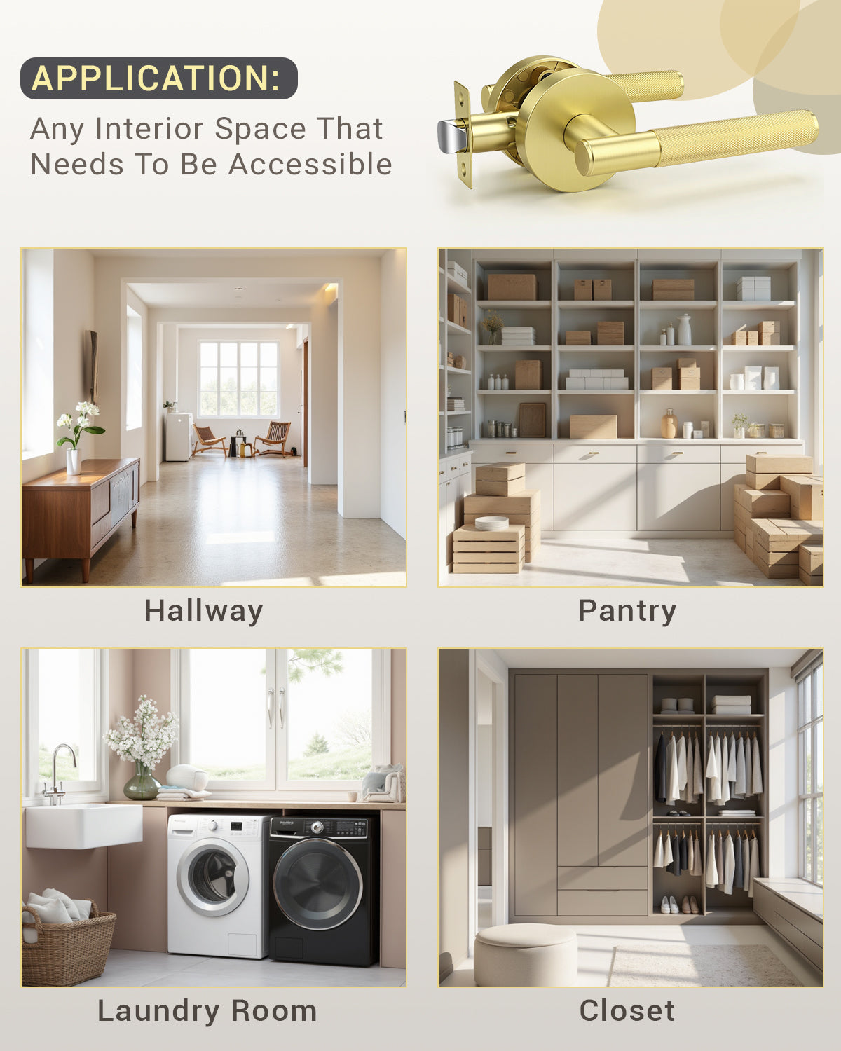 - Applicable Scenarios: Hallways, closets and other areas where locking is unnecessary.