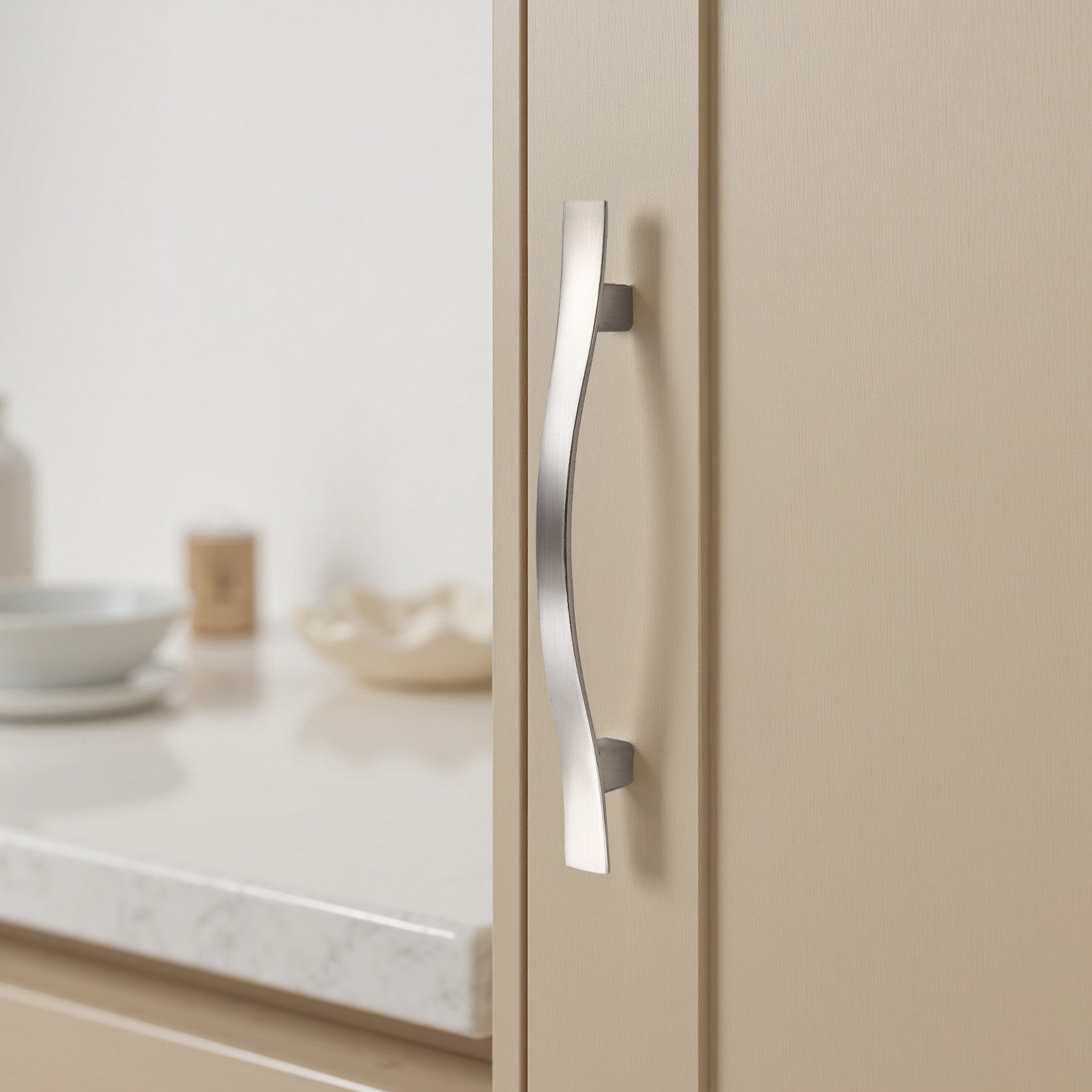 Wave Style Kitchen Cabinet Handles, Modern Dresser Drawer Pulls - Hole Spacing for 3-3/4'' - PD840